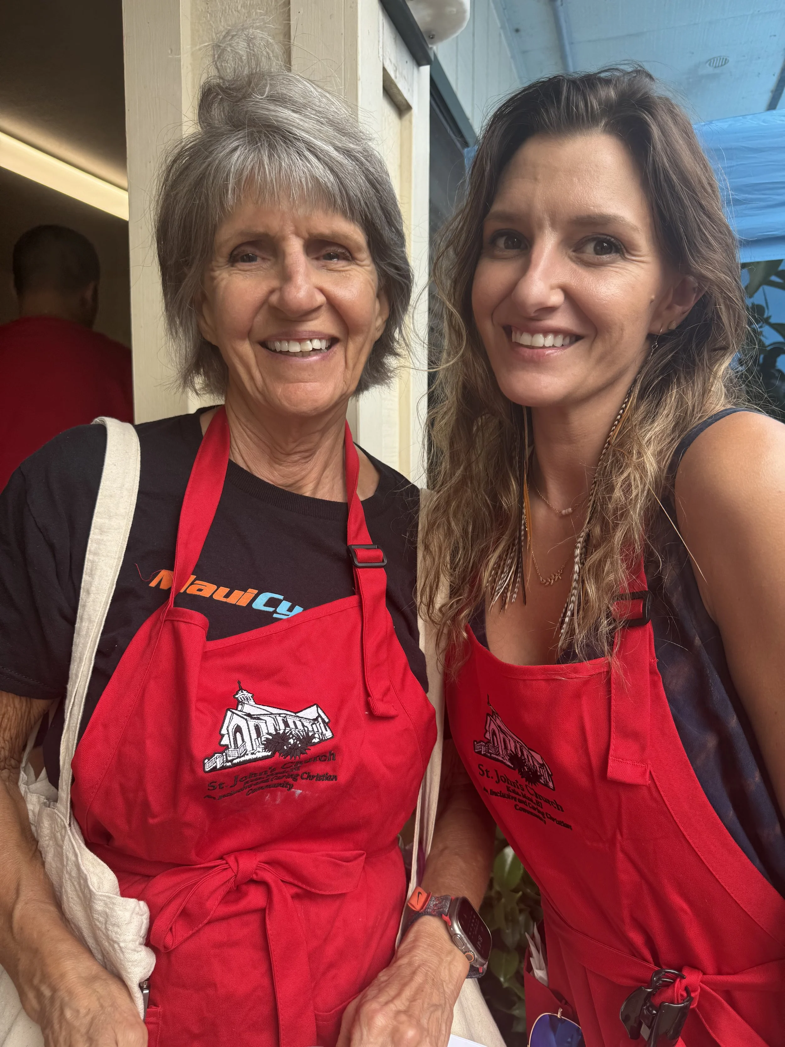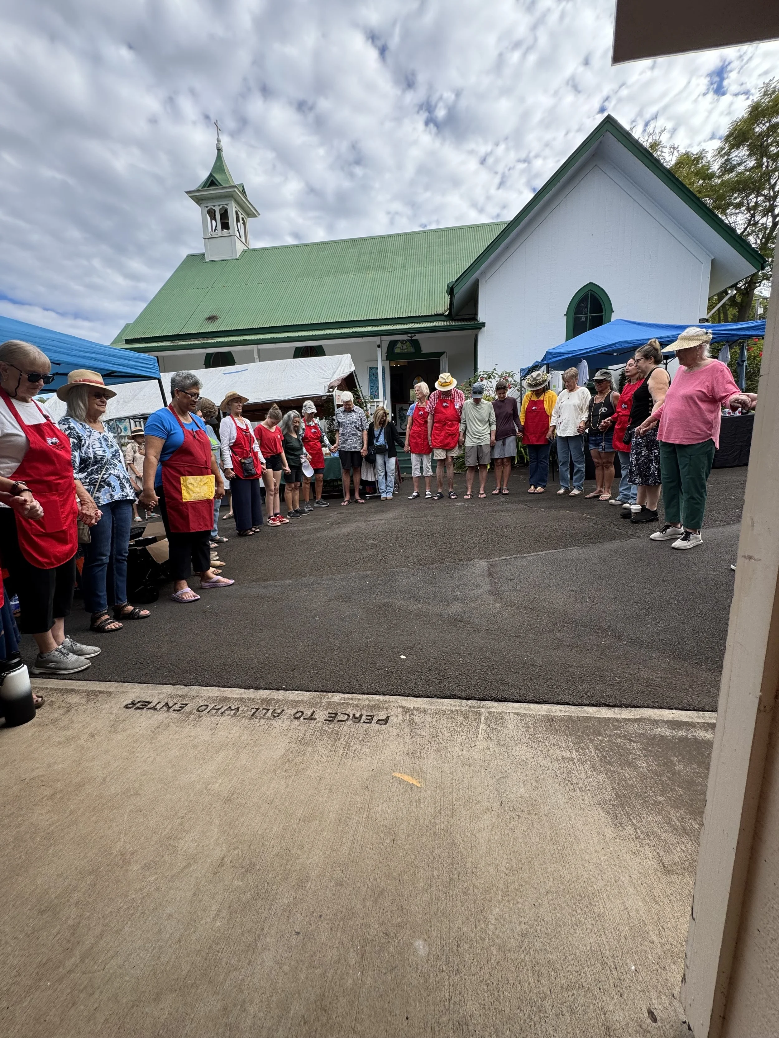 The First Festival was held on Oct. 23, 1982. It began because the church was participating in a yearly fundraiser that was held at War Memorial Gym in Wailuku and they decided why go all the way there when we could have something larger right at the church? Quilts made by church members and Willie Fong's Chinese Handicrafts were the highlight of the first festival. It has evolved into a huge yearly event, 2,500 people attend (pre-pandemic) and the proceeds go to support St. John's Ministries and different partner charities chosen each year. Entertainers like Uluwehi Guerrero and Amy Hanaili'i have performed at the Festival. Highlights are a huge Silent Auction, yummy food such as Chow Fun, Baked Goods, David Fullaway's Fudge, Flowers, Plants and Produce. Mahalo to Shannon Barber-Meyer for the photo below. Click on Facebook above for more pictures.